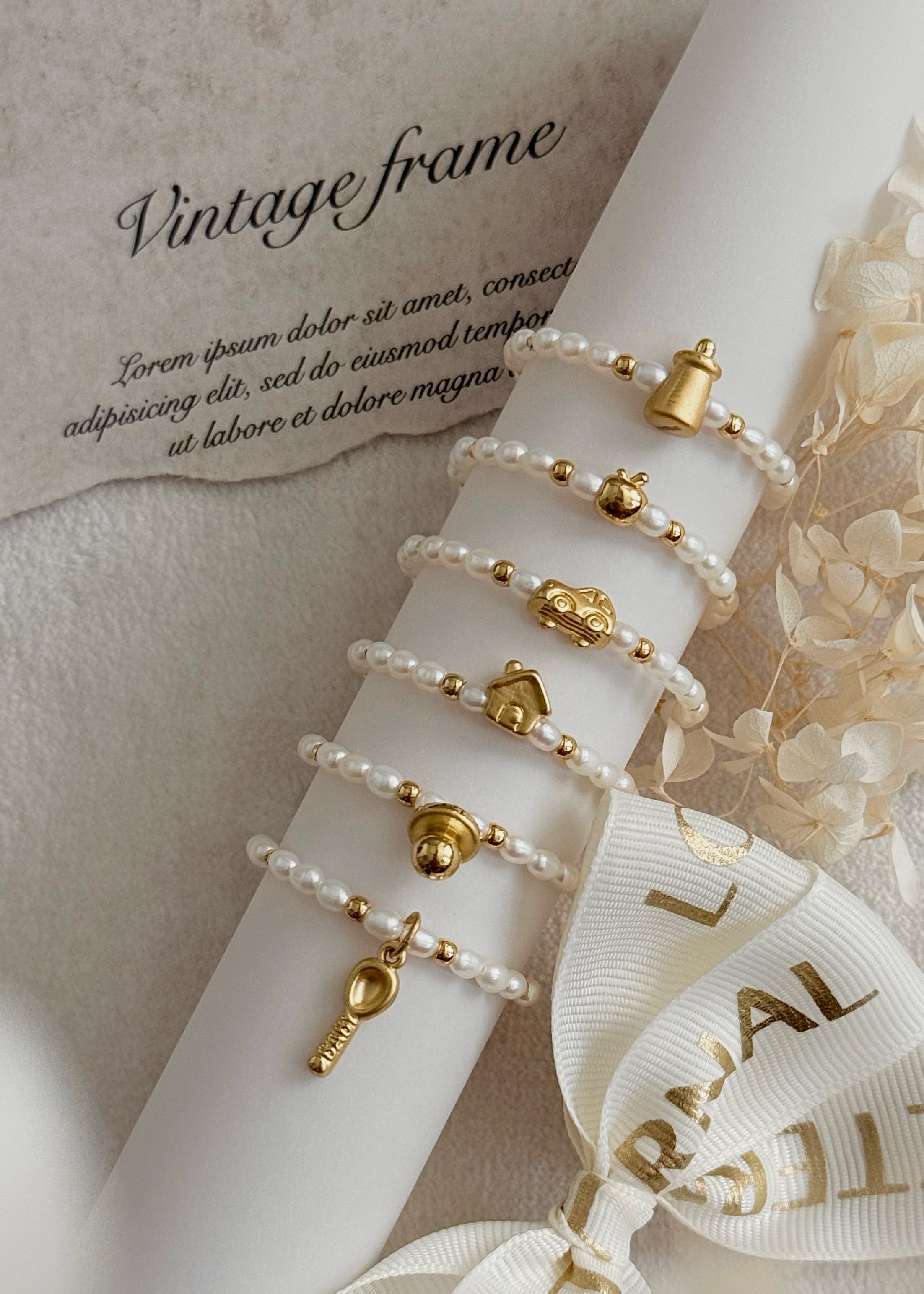 "Exclusively designed by us, this bracelet collection features natural pearls and pure gold, symbolizing 'purity'—as white and innocent as a baby."